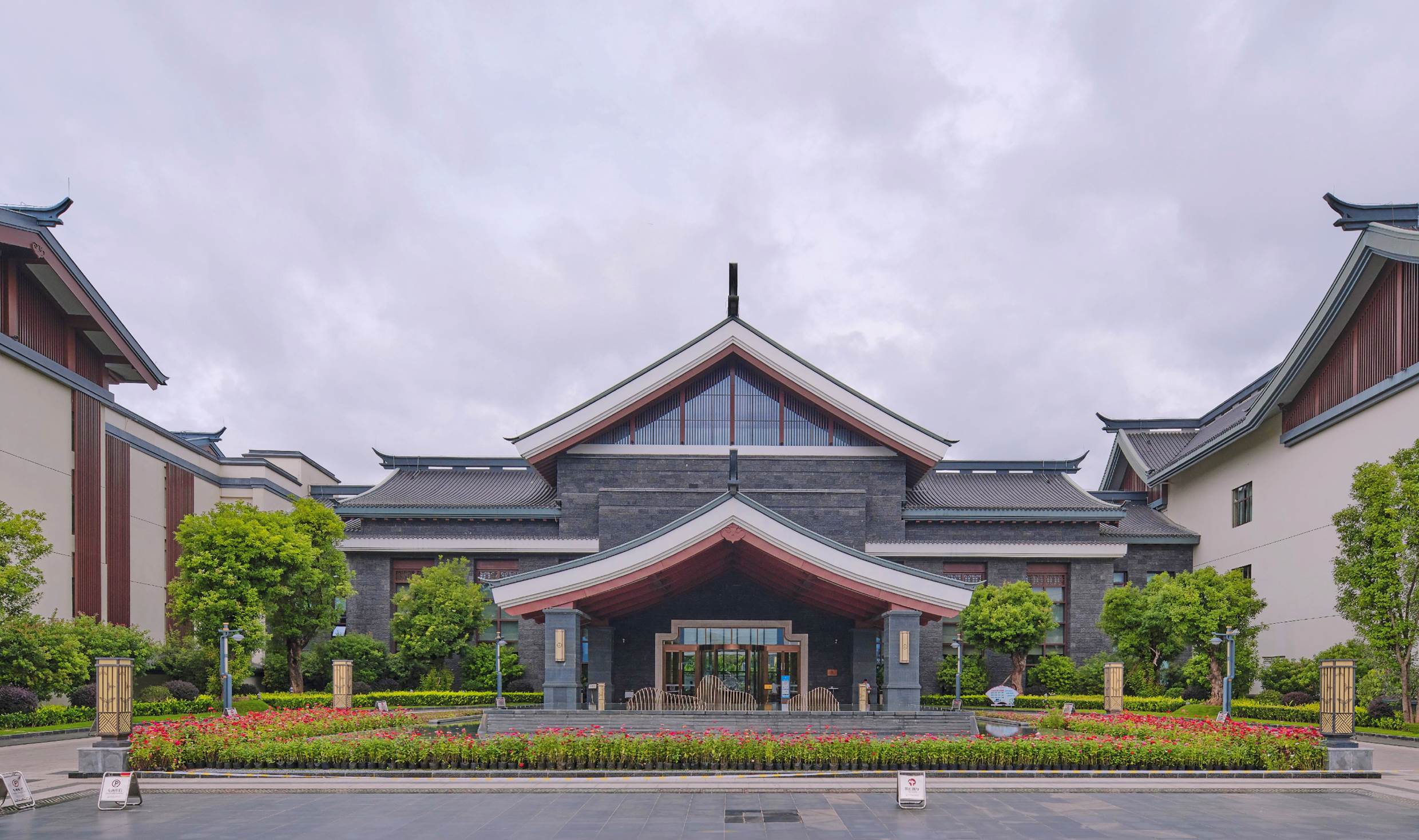 項(xiàng)目用地面積67123㎡,建筑總面積58742.85㎡,其中:地上面積44040.35㎡,地下面積14702.5㎡。主要建筑包括:酒店主樓、高端客房、合院客房、貴賓樓、服務(wù)中心等,功能涵蓋能夠滿足不同客群需求的客房服務(wù)(含中、高端客房及獨(dú)棟合院客房)、餐飲服務(wù)(含中餐廳、特色餐廳及全日餐廳)、會(huì)議、宴會(huì)及康體娛樂服務(wù)(游泳、健身、SPA)及后勤管理、服務(wù)用房、地下停車庫等。建筑層數(shù)為地上1~4層不等,地下1層。