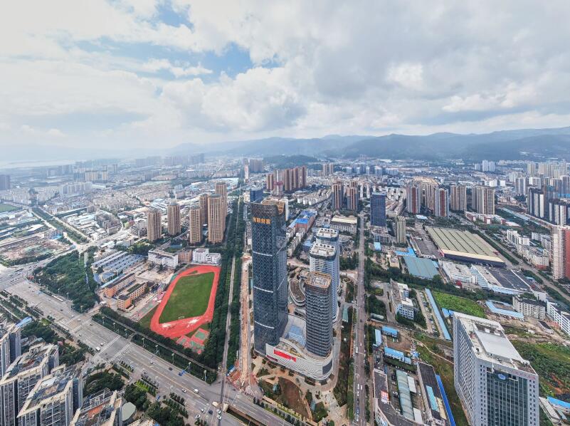 “海源財富中心項目”位于昆明西市區(qū)海源中路,2014年開展設計,2020年竣工驗收??偨ㄖ娣e約35萬㎡,是包含辦公、酒店、商業(yè)和公寓的城市綜合體,是將各種復合功能復合、相互作用形成價值鏈的高度集合化的建筑群體。本項目從“城市性、開放性和集合性”的層面上出發(fā),致力于打造“科技的建筑、綠色的建筑和文化的建筑”,把城市功能與城市發(fā)展之間的邏輯關系通過建筑實體與城市其他空間有機結合,從而形成新的城市實體。